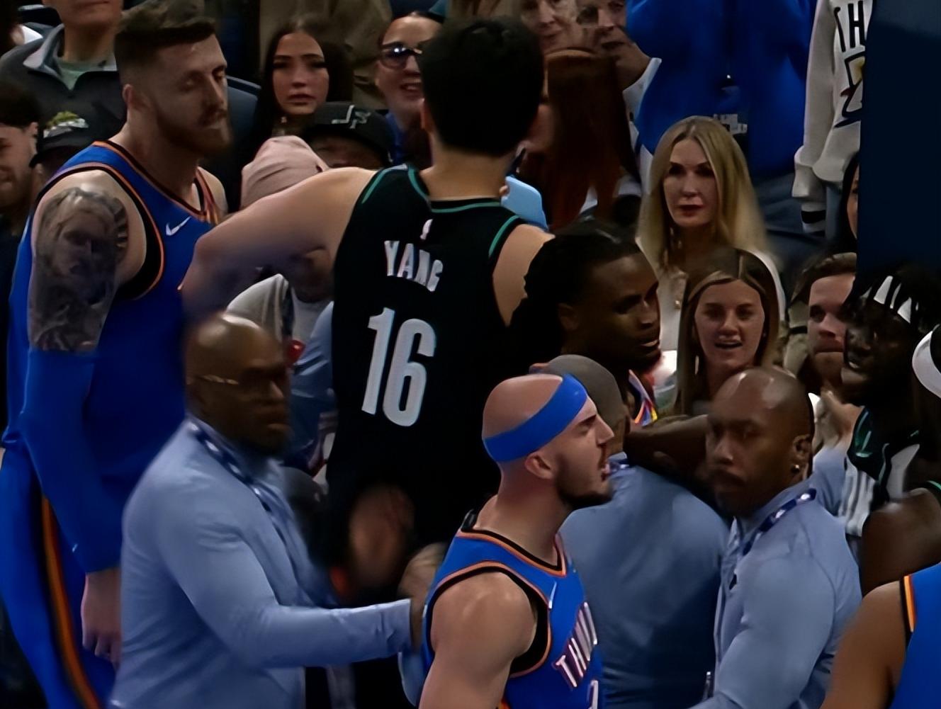 当队友与对手爆发争执时,杨瀚森第一时间上前劝架,拉走暴怒的哈尔滕施泰因,避免了事态升级。他用行动证明,球星不仅是得分机器,更是团队的定海神针!