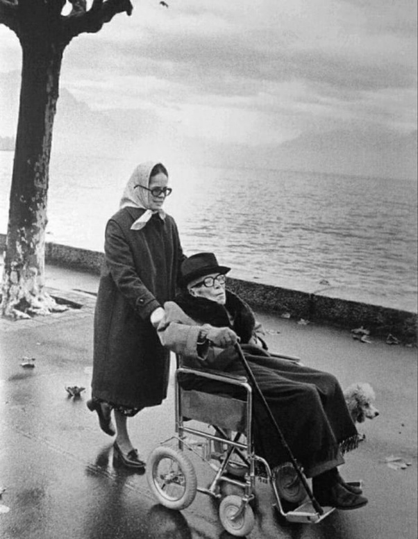 2. 这是传奇人物查理·卓别林 1977 年拍摄的最后一张照片之一。几个月后,他于同年 12 月去世,享年 88 岁。