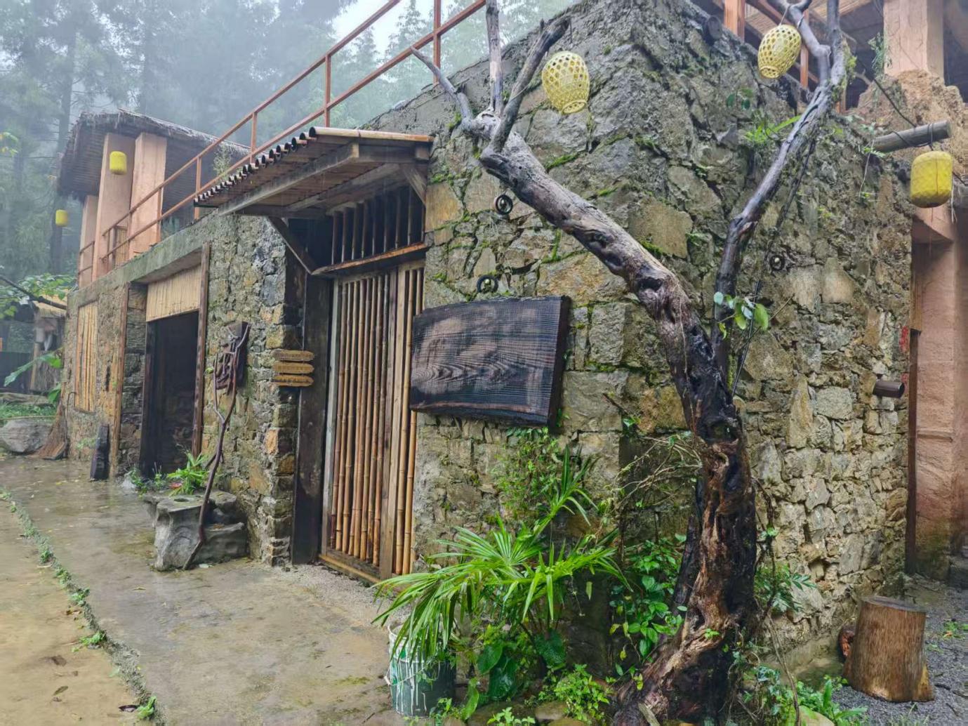 三、石屋深处,心灵的疗愈场循着林间若有似无的木樨香再往里走,便见白马草堂的石屋群落。石块垒砌的墙面粗糙而厚重,岁月在上面刻下风雨的痕迹,苔藓在石缝间悄悄蔓延,像是大自然亲手绘制的纹路;竹制门扉半掩着,门檐下悬着几盏藤编灯,造型拙朴,像从树枝上自然结出的果实;门前老树枝干扭曲,却倔强地抽出新叶,与墙角蓬勃的绿植相映成趣,湿漉漉的地面(似是刚被山雨浸润过)泛着温润的光,将石屋衬得愈发沉静。