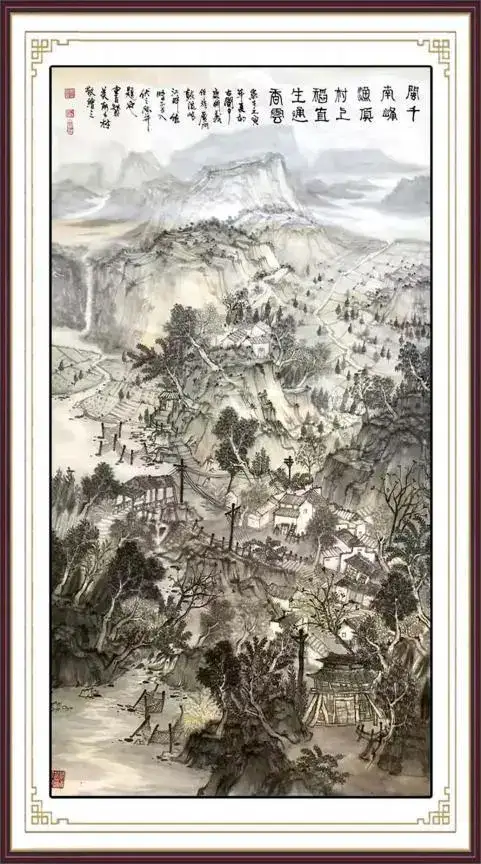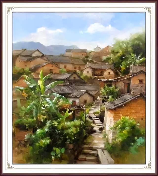 国画《闽南渔村稻生香,千峰顶上直通云》