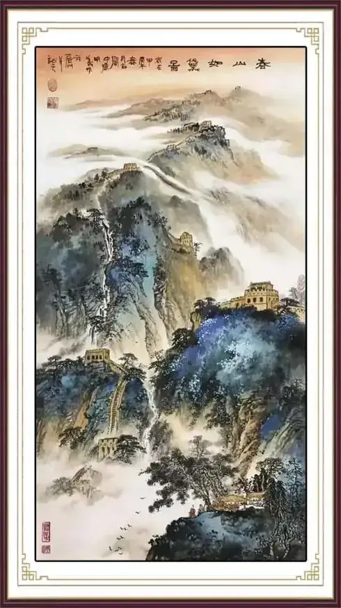 明义的青绿山水作品,是艺术与心灵的完美融合,是传统与创新的精彩碰撞。他以独特的艺术视角、精湛的技艺和深厚的情感,为我们展现了一个丰富多彩、充满魅力的艺术世界。他是中国山水画领域的杰出代表,是当之无愧的艺术大师。他的作品将激励着更多的艺术家在艺术的道路上不断探索、创新,为中国艺术的繁荣发展贡献自己的力量。