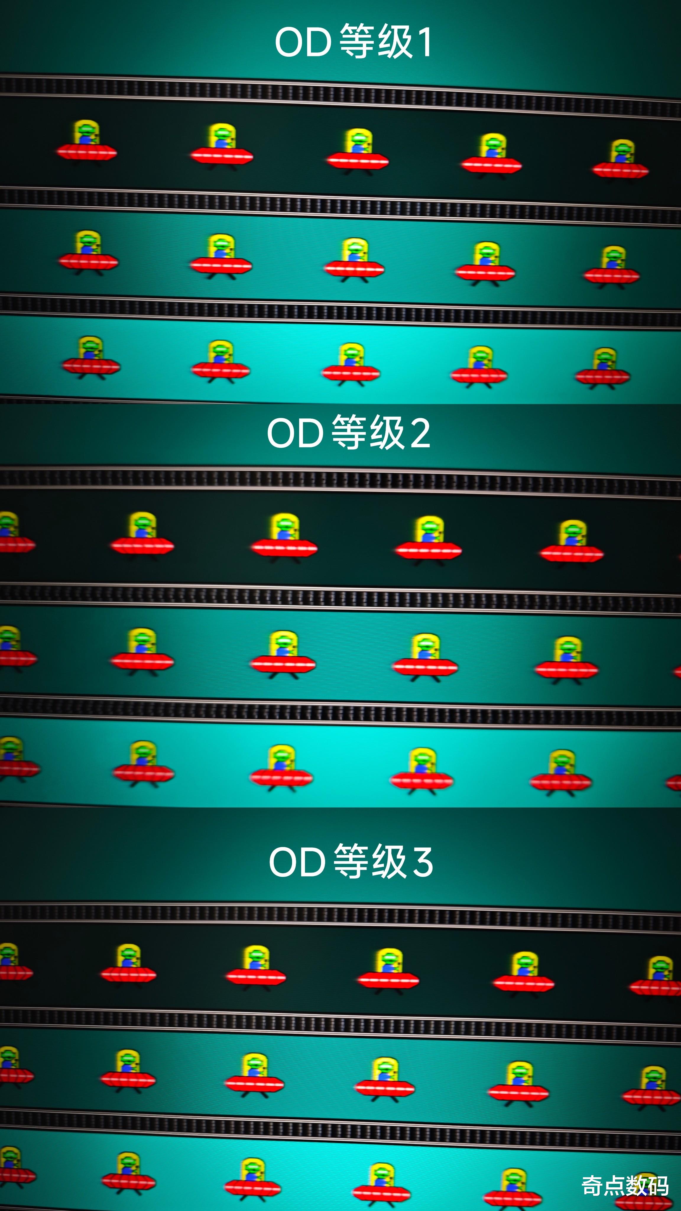 在小飞碟的测试中,我分别对三个等级的OD进行测试,相机快门设置为1/80s,捕获了外星人移动的画面,三个等级整体相差不是很多,但是仔细观察还是等级3的OD值显示效果最好。画面显示仁者见仁智者见智,该测试仅供参考,各位小主还是要以自己的实际体验为主。