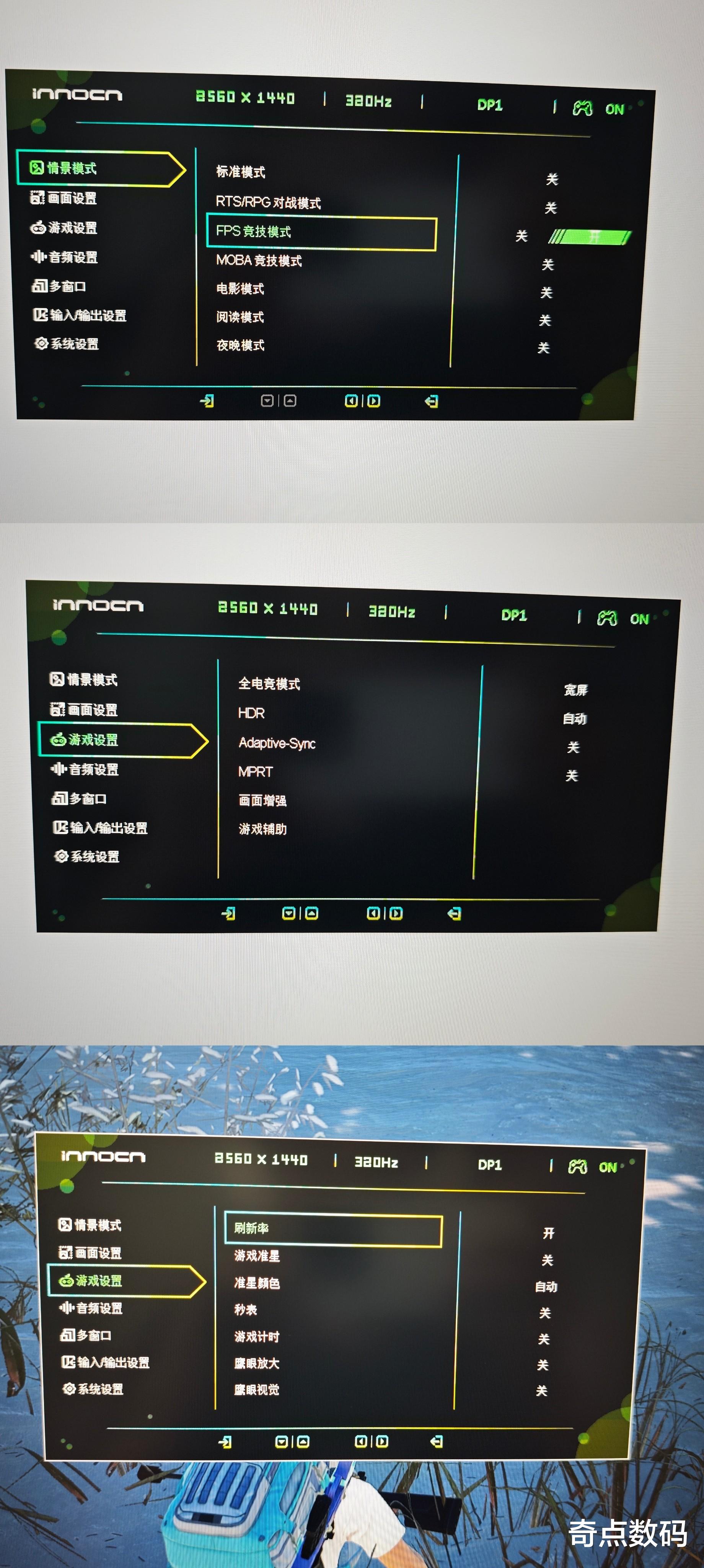 对于这12种场景中,我最在乎的还是游戏场景。在情景模式中选择FPS竞技模式打开,你以为这就完了?那你就天真了,他居然还提供了游戏设置,在游戏设置里,你可以显示刷新率,设置游戏准星,游戏计时,鹰眼放大等好多项功能。这些设置足以看得出联合创新在设计产品时的良苦用心。