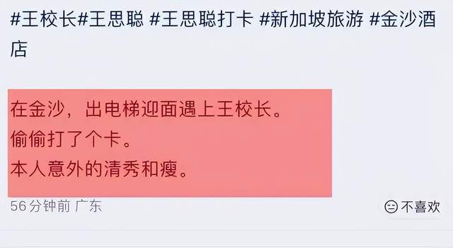 也有网友在新加坡酒店碰到了王校长,看着这位国民老公现在格外的清秀消瘦,