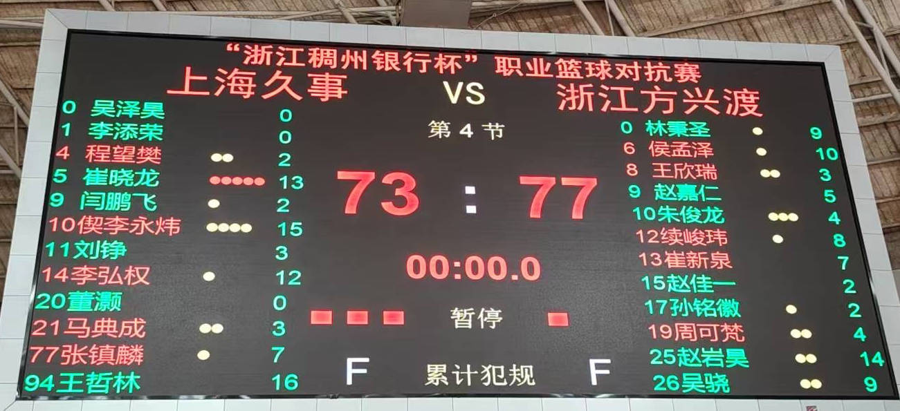 第二个消息,“浙江稠州银行杯”职业篮球挑战赛第二个比赛日,经过四节的较量,浙江广厦77-73战胜上海久事,上海男篮在热身赛中遭遇两连败。