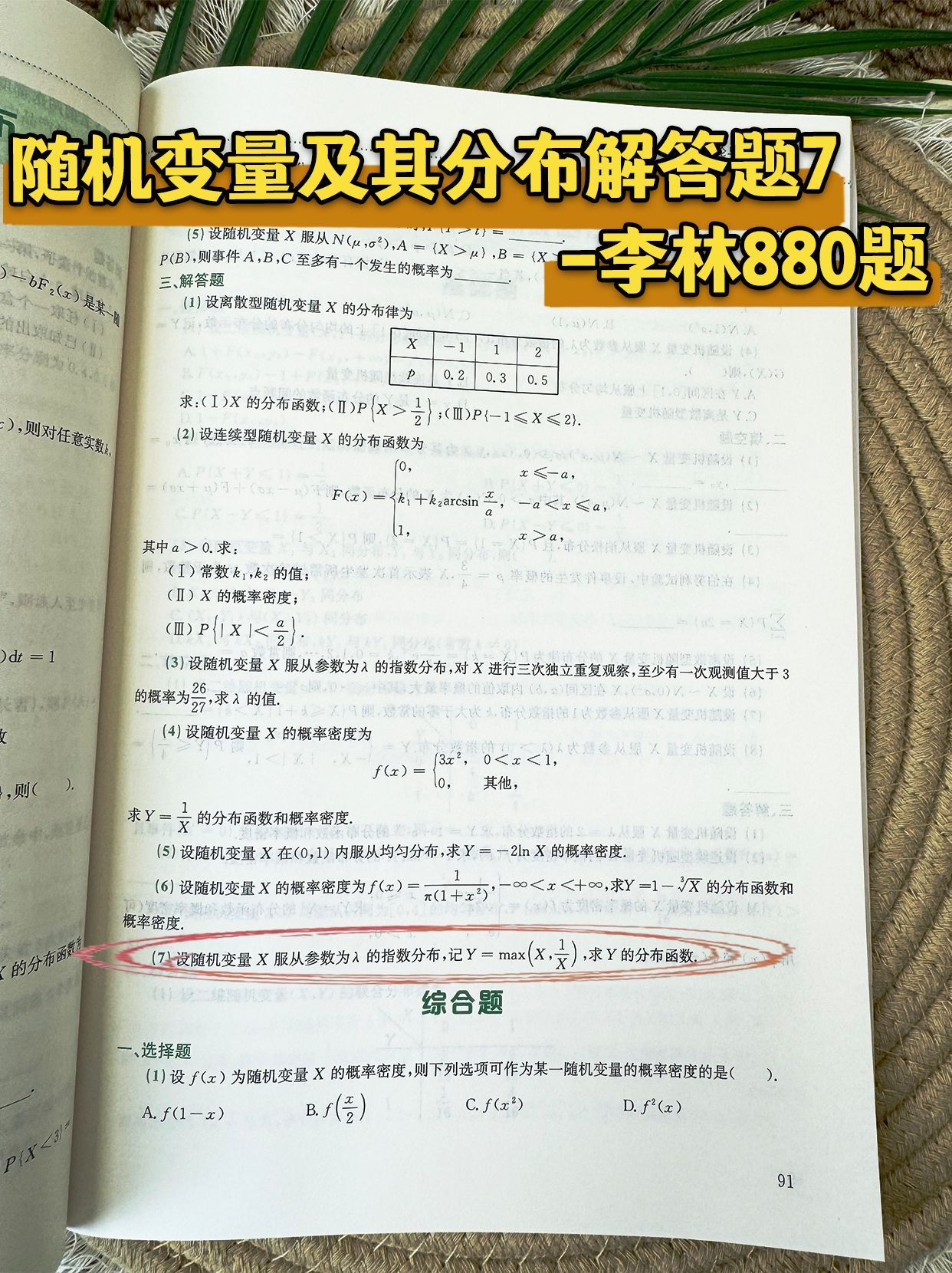 2026李林考研数学精讲精练880题数学一---概率论与数理统计---第十七章随机变量及其分布---基础题---解答题7