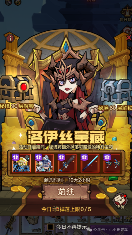 洛伊丝宝藏(开服 20-48 天服):通过 “每日秘境 3 次”“穹顶之战 2 胜” 等任务攒钥匙,每日保底 2 把,10 连抽紫装掉落率提升 30%;