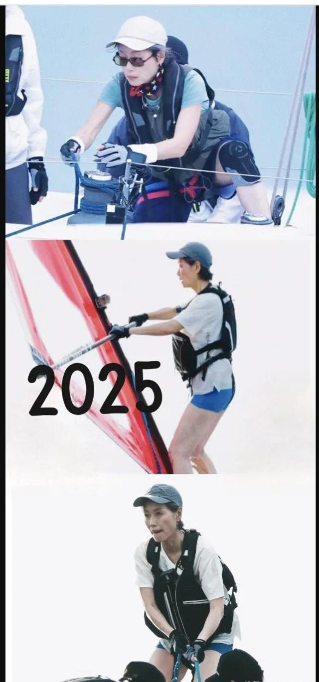 之所以能够保持这样的状态,和她的心态有很重要的关系,她是一个非常喜欢运动的人,只要工作闲下来,就会去海上冲浪,这样的动作,年轻人都不敢尝试。