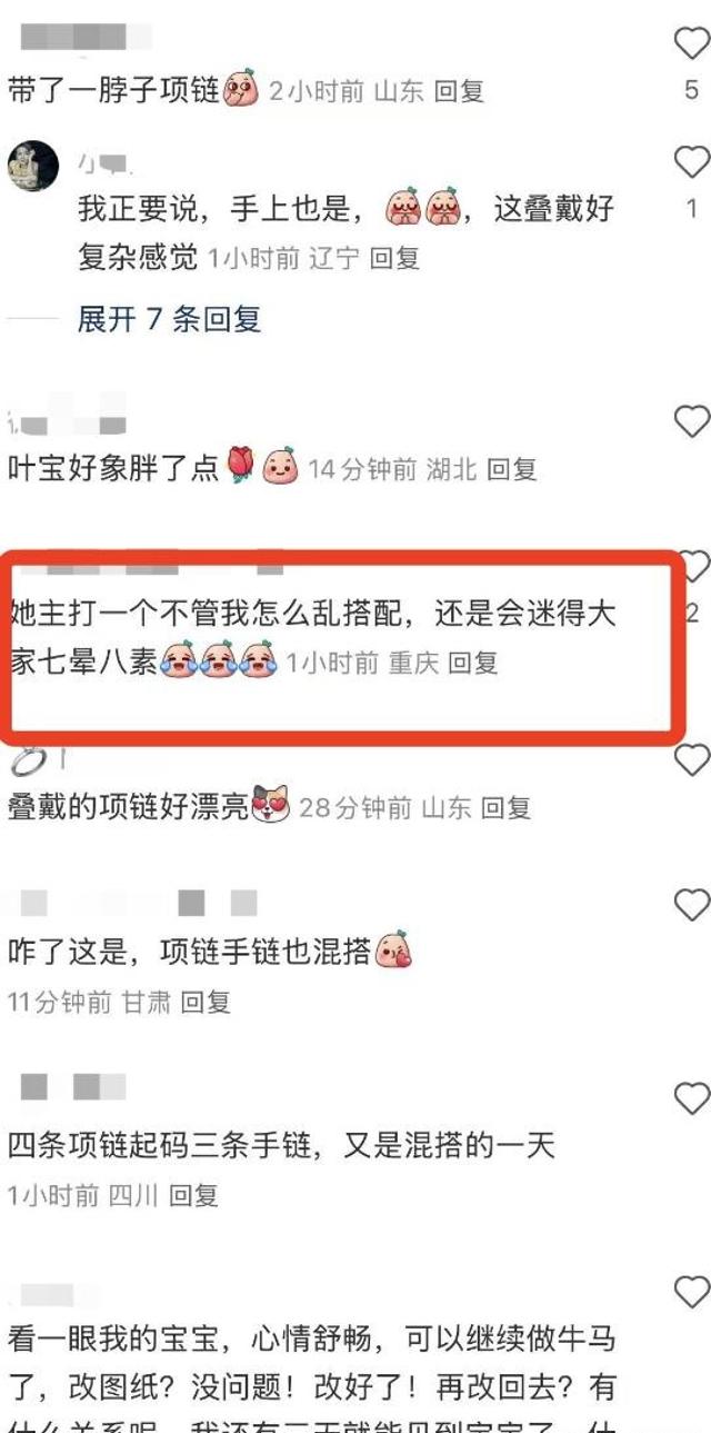 这身打扮引起不少网友的热议,一脖子项链看上去很复杂,主打的就是一个随意穿搭,可不管怎么搭配, 不少网友认为依然很迷人。
