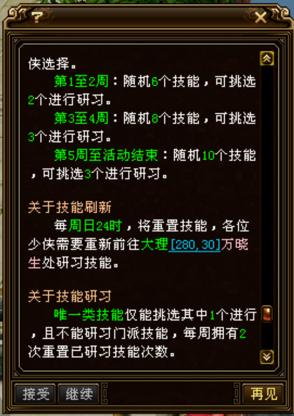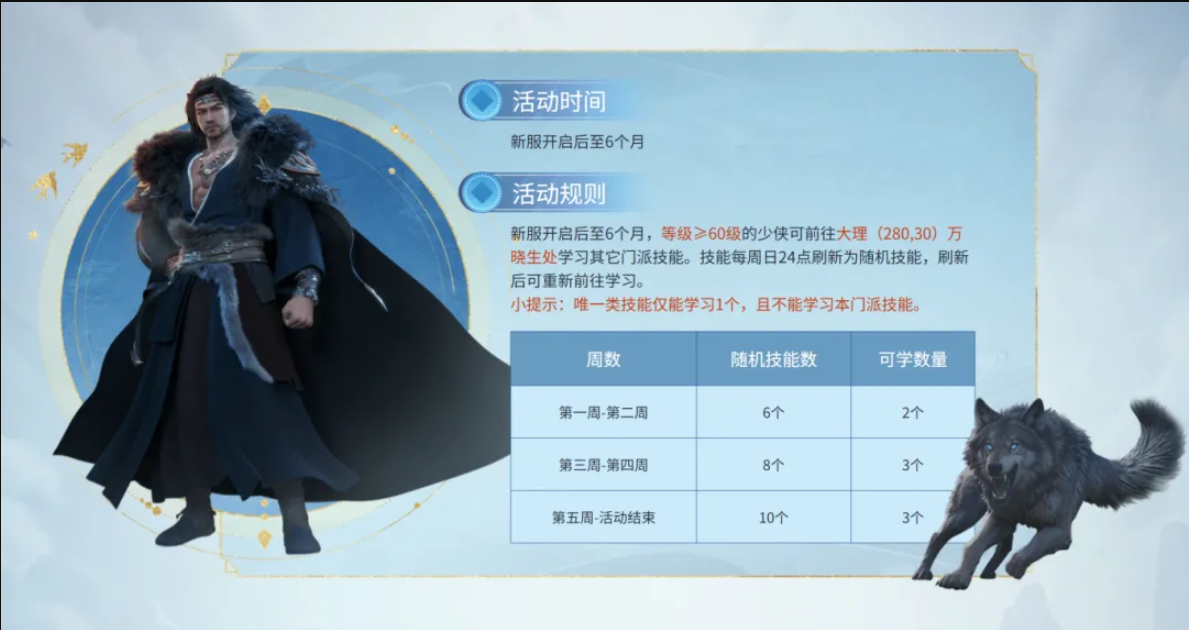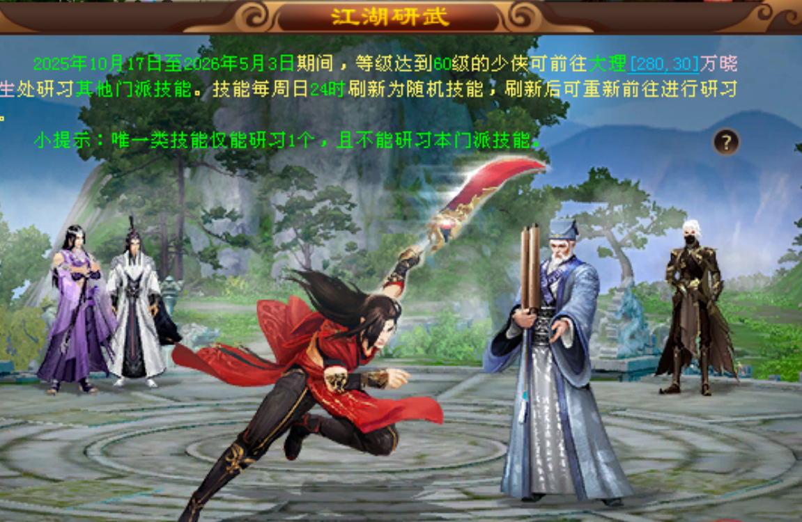 说真的,无界服最妙的地方,就是让整个服务器的玩家都找到了共同话题。你现在随便在世界上喊一句"我是少林,求问这周的技能学什么好呀",立马就能收获几十条回复。这种感觉,就像全服玩家都在参加一个持续六个月的武林大会,每周都有新课题,每周都有新乐趣。