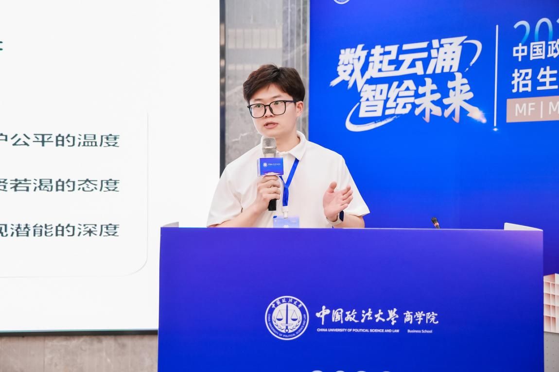 中国政法大学金融专硕优秀校友刘姊玥以《为什么可以坚定地选择法大金融专硕》为题展开分享。她表示,法大金融专硕的课程体系丰富且实用,注重金融实践与法律思维的融合,专业培养和行业需求高度契合。此外,学校毗邻金融街,为学生实习、校招提供了极大便利。校友网络活跃且互助性强,在校期间积累的同学情谊也成为职业发展中的宝贵财富。她总结道,法大金融专硕不仅赋予学生扎实的专业功底,更提供了支撑长远职业发展的平台与机会。