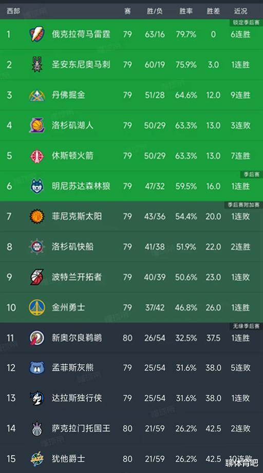 所以湖人和火箭指望掘金全败不太现实,即使掘金全败,湖人和火箭能够做到全胜吗?湖人接下来的对手分别是勇士、太阳和爵士,勇士和太阳都是附加赛区的球队,爵士已经遭遇了10连败,是垫底的球队。正常情况,全主力的湖人并不怕勇士、太阳,爵士,但现在湖人是残阵,缺少了东契奇、里夫斯,詹姆斯今天对阵雷霆的比赛也没有登场,未来会不会继续缺阵,就看他的恢复情况。总之,残阵湖人没有竞争力,未来三场比赛凶多吉少。