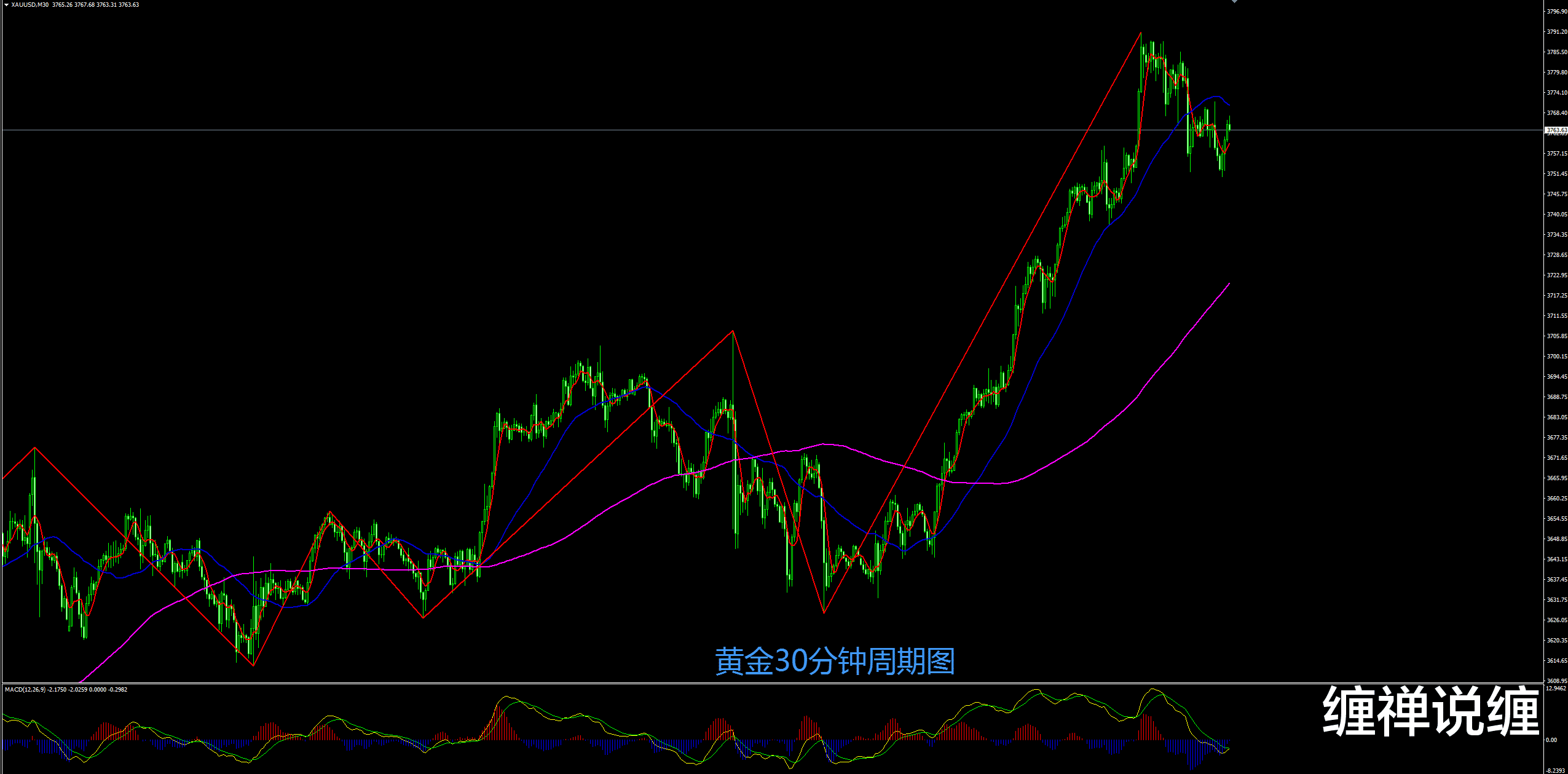 黄金30分钟短线回落,黄金如果继续突破3792,那么黄金30分钟才有望延续上涨,黄金如果跌破3750,黄金30分钟可能短线转弱,不过黄金5分钟开始震荡下行转弱,黄金5分钟反弹短线遇阻回落;黄金短线可以先空,如果继续跌破3750,那么黄金可能延续弱势。黄金短线遇阻回落,短线弱势有望延续!