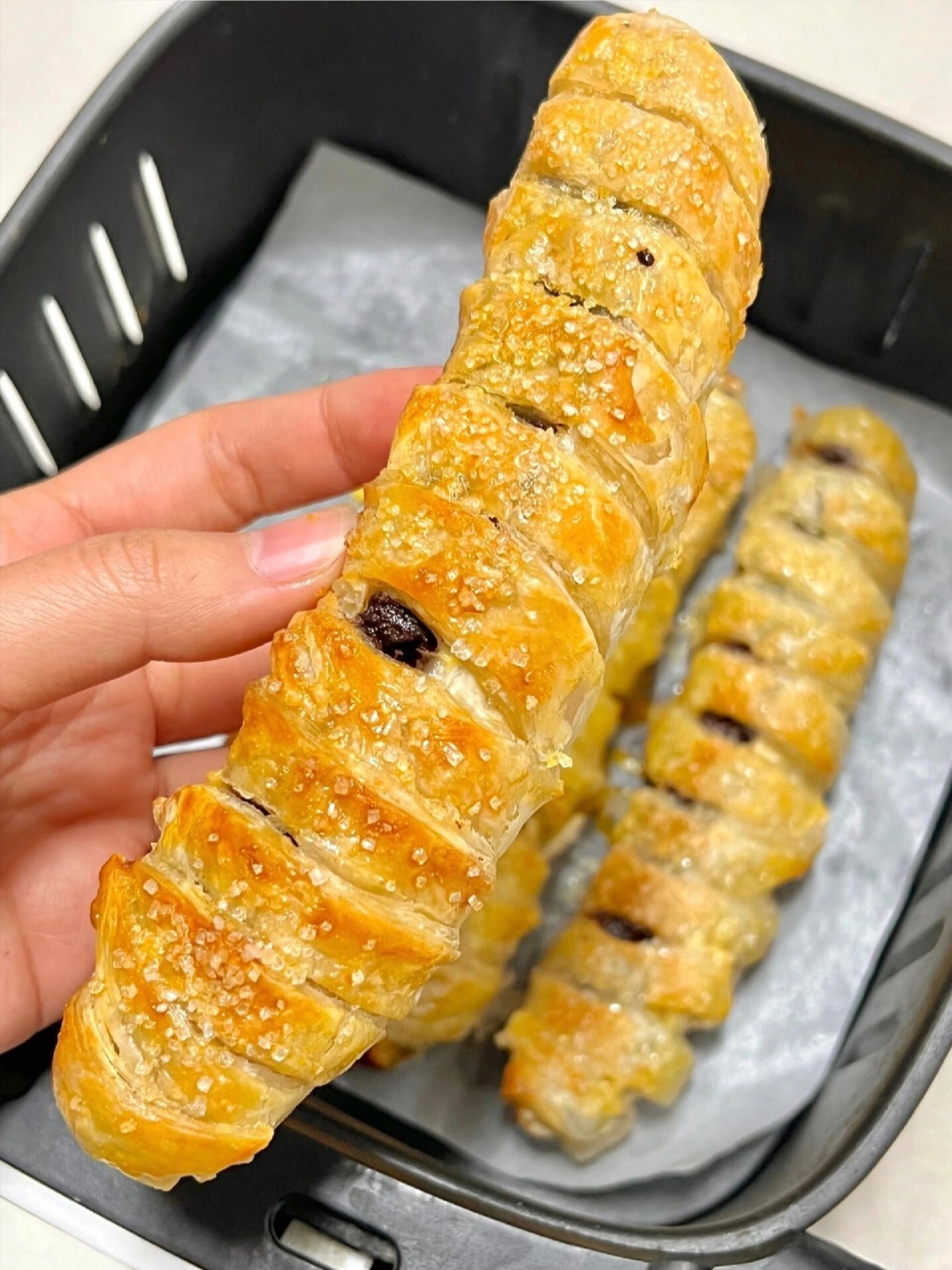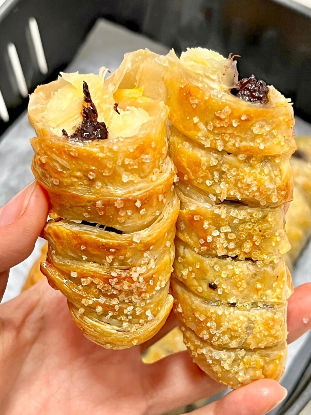 刚出锅的巧克力香蕉派,外皮金黄酥脆、香气扑鼻。轻轻咬开,温热的香蕉泥裹挟着丝滑的巧克力酱缓缓流出,香甜浓郁的味道在舌尖绽放,酥脆与软糯交织的口感,带来超满足的味蕾体验,无论是当作零食还是下午茶,都让人一口就沦陷!