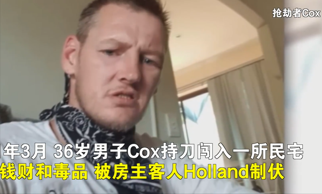 澳大利亚维多利亚州法院近日审理了一起罕见的入室抢劫被反杀案。 2021年3月,一名36岁的男子Cox持刀闯入一所民宅,意图抢走钱财和毒品,却被房主的客人Holland制服并残忍性侵。 Holland在逃离现场后不久被警方逮捕,而Cox则因为受伤过重而死亡。
