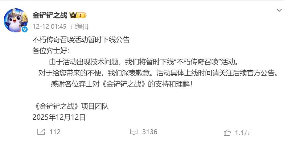 12 月 12 日晚上,官方终于发布致歉公告。可这回应不仅没平息怒火,反而直接点燃了全网玩家的情绪。
