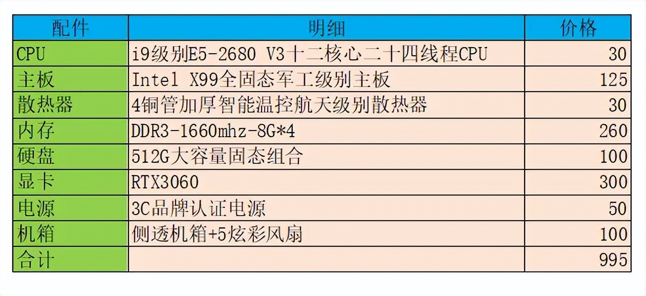 结果是995。就这个价格,肯定是虚高了,实际可能连950都不到。一来很多配件,老田都是往高算了。二来,我说的市场价是单个购买的价格,人家这是批量采购,肯定更便宜。