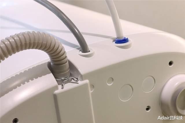 将进出水管都接好,电源线也接好。由于会有高温洗的功能,洗衣机后部会有一个高温出气口,这里注意不要遮挡了。