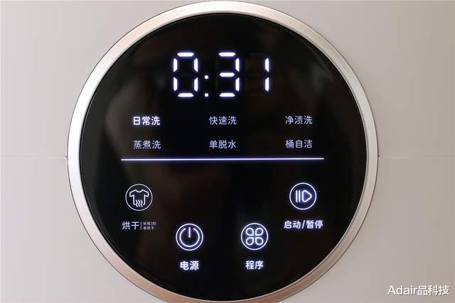 接通电源后,实际操作就比较简单了,和普通的洗衣机交互差不多。七种不同的工作模式,单击切换,依据实际的需求来进行,也可单独进行内桶的自清洁、单独烘干、脱水等功能。