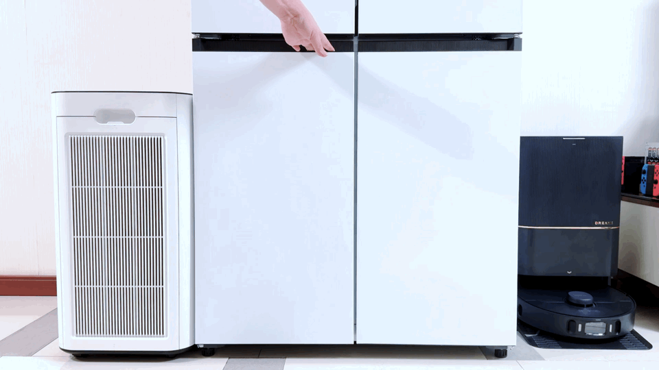 上边的测试也变相验证了一点,在空气净化器贴边冰箱放置的状态下,这台冰箱也可以的大角度开关门,不会影响冰箱门的开合以及抽屉的使用,便于家人日常取用冰箱内的各种食材。