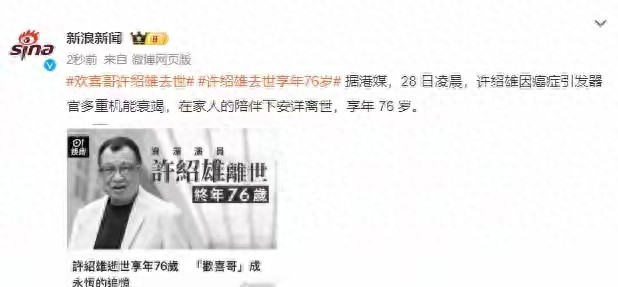 许绍雄对工作的热爱,对家人的呵护,都让网友们感动!一路走好!“欢喜哥”愿天堂没有病痛。
