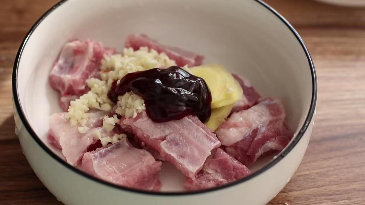1. 将排骨放入一个大碗中,加入切好的蒜末、姜末和小葱段。