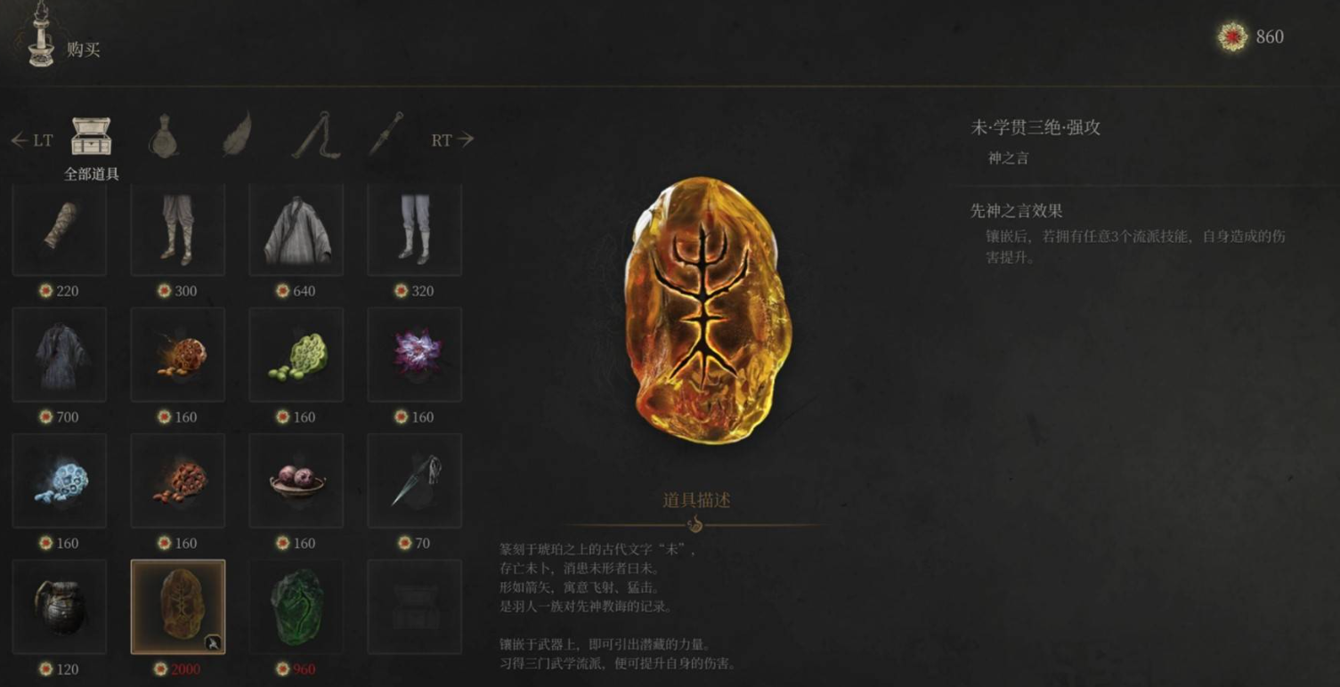 篆刻于琥珀上的 “未” 字,形如箭矢,是羽人一族对先神教诲的记录,镶嵌后可引出武器潜藏力量,与习得的三门武学流派呼应,提升伤害。
