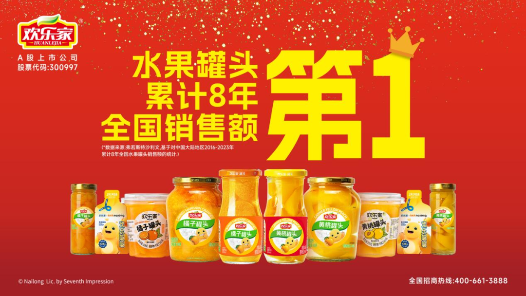 在快消品市场迭代加速的当下,水果罐头这一承载着几代人记忆的品类,正迎来“破圈焕新”的关键发展机遇。作为累计8年全国销售额第一的水果罐头领军品牌*,欢乐家携手国民IP奶龙,以深度共创的跨界合作,重塑品类价值认知,为水果罐头行业开辟“零食化”的全新增长赛道,树立了品类升级范本。