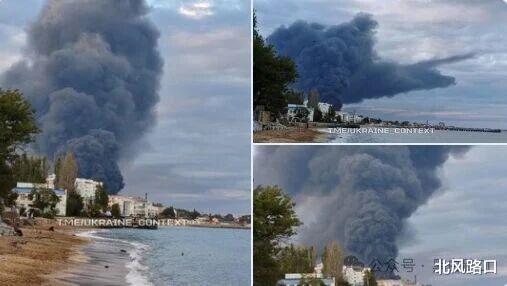 克里米亚费奥多西亚的油库在夜间遭到袭击,白天仍在燃烧,无法停止,目前已有四个大型储油罐处于危险之中,整个油库将被彻底烧毁。