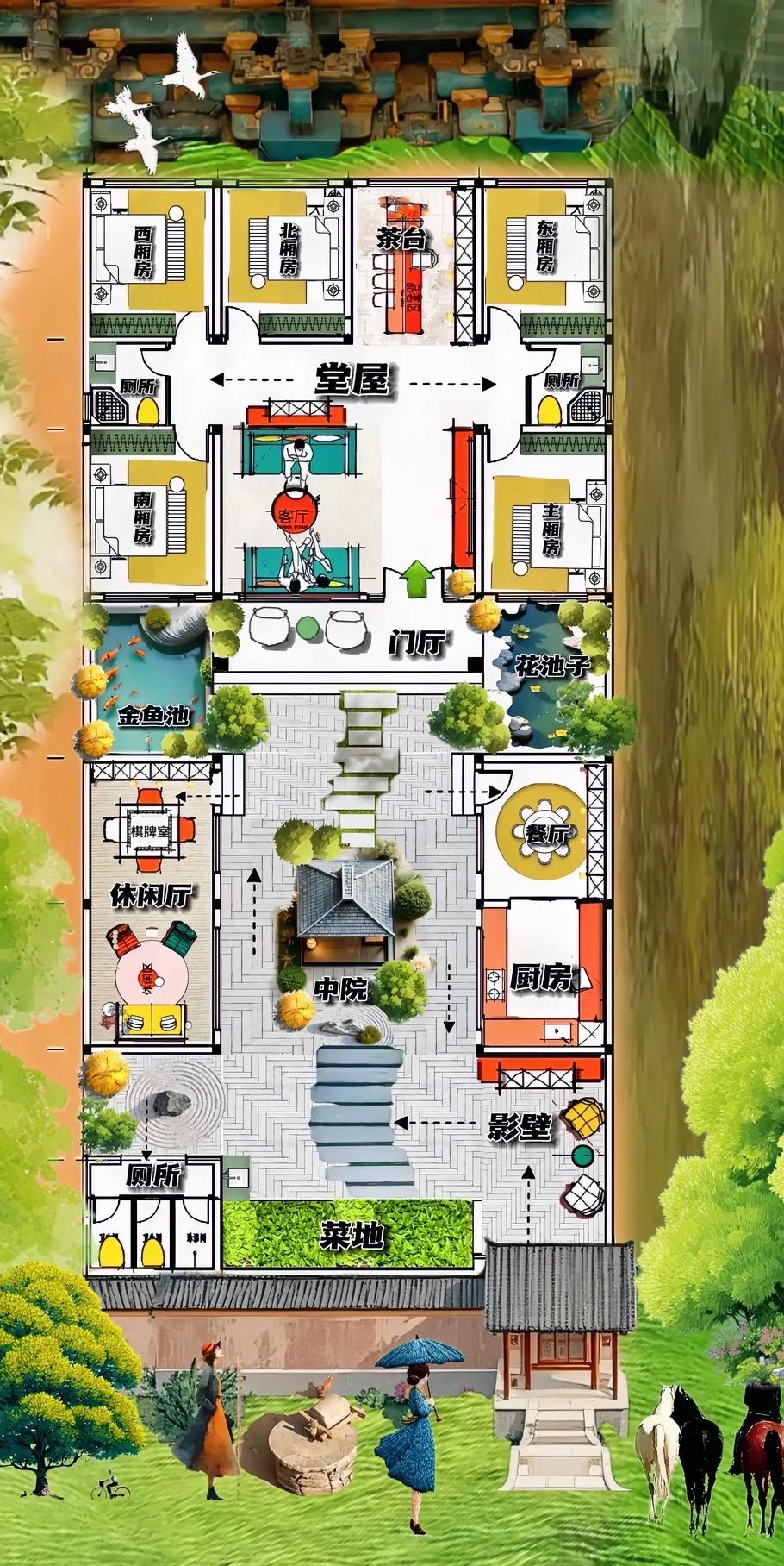 你看,自建房褶皱里,全是对合院的的爱,另类的三进院,像百灵鸟一样好听,布局和意境,共同构成了自建房,打动人心的力量。