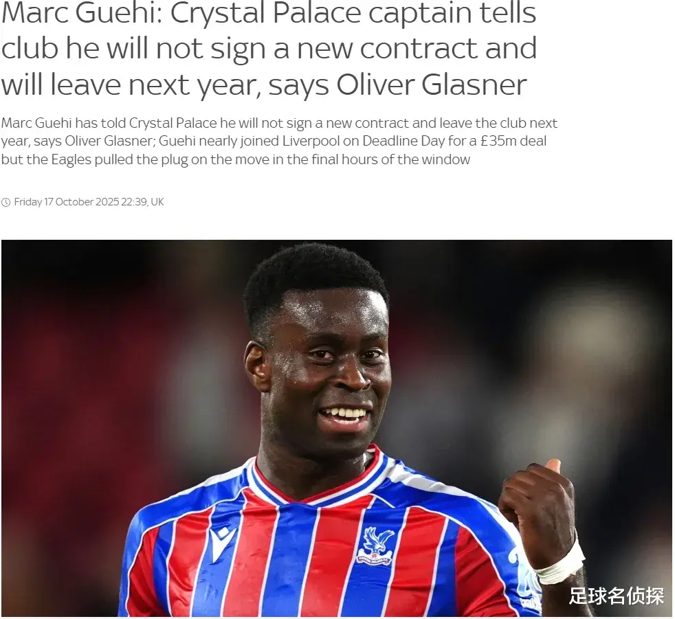 水晶宫主帅格拉斯纳确认,格伊已经表态自己不会续约,并且将在明年自由转会离队。实际上,格伊目前的合同明年夏天到期,因此他在一月份时就能自由和国外的俱乐部草签协议。