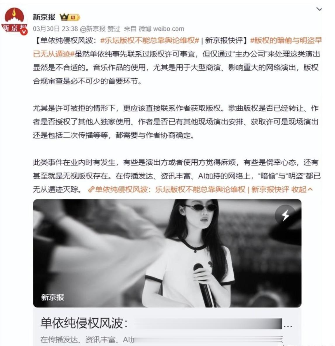 多家官媒在第一时间发文点评此事,直指单依纯的侵权行为。