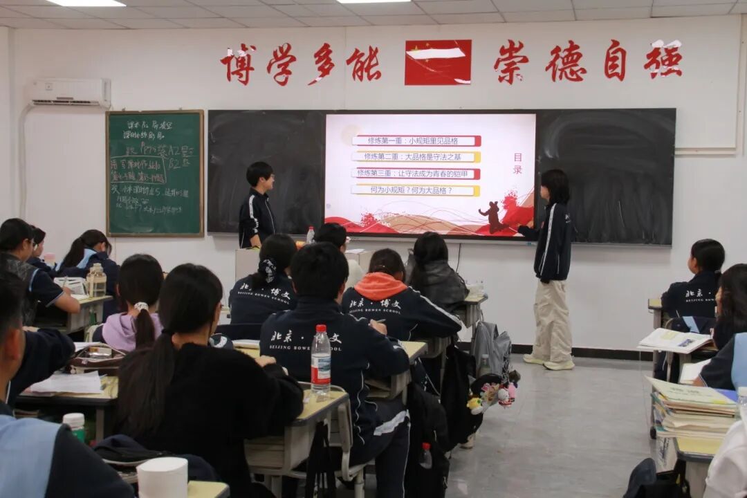 法治是青春成长的 “安全铠甲”,规矩是品格塑造的 “基石密码”。为引导高中生扣好人生 “第一粒法治纽扣”,北京市博文学校高中部于近日同步开展 “法治护航,青春无‘险’” 专题讲座与 “小规矩筑大品格:从遵纪到守法的青春修炼” 主题班会,以 “理论 + 实践” 双轨模式,为学子筑牢法治思想防线,涵养文明守纪品格