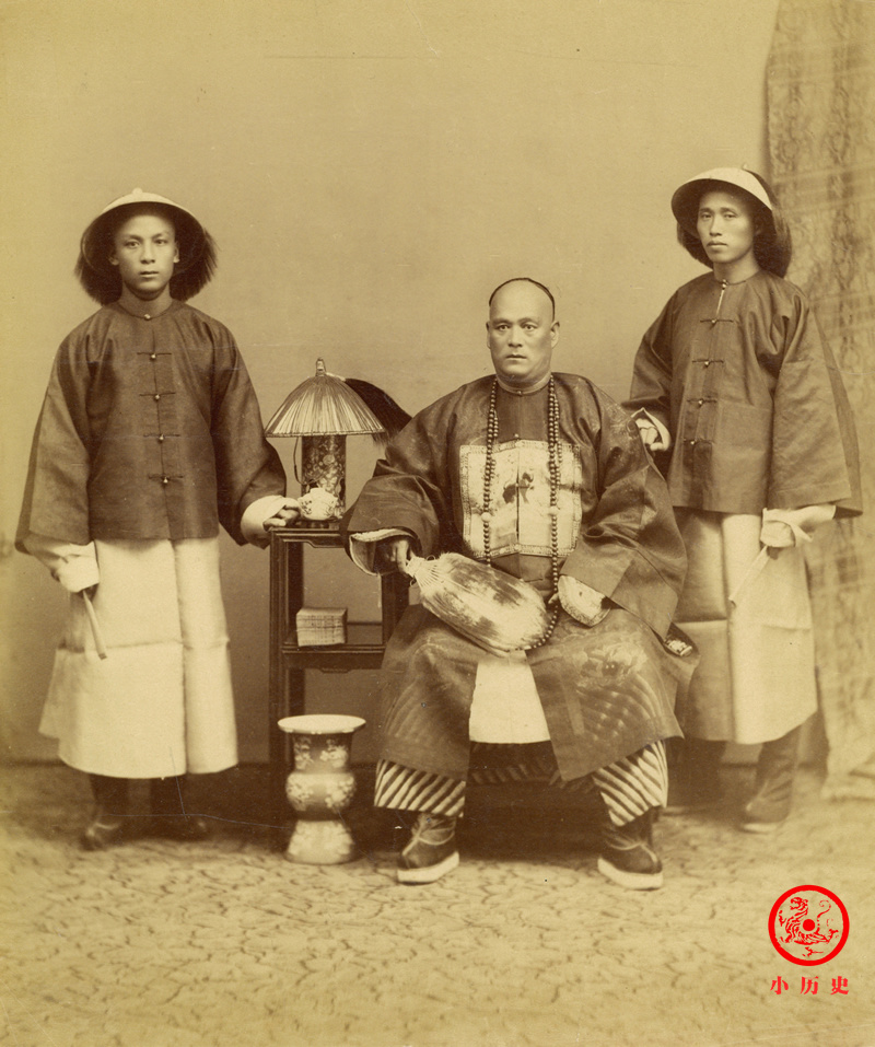 灰头土脸、破衣烂衫,就是晚清时代农村儿童的普遍形象。他们绝大多数没有机会读书识字,但凡懂点事、有点力气,就要帮家里分担家务,或者照看弟弟妹妹。右二这位小姑娘,抱着自己的弟弟,已经裹上了小脚,令人心痛。