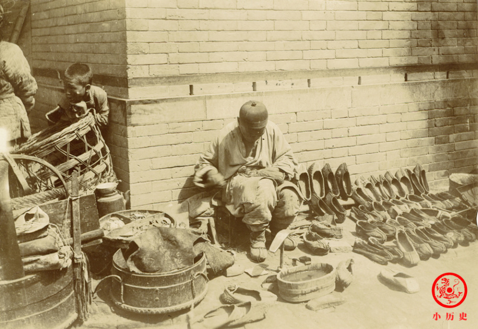 修鞋是一个传承数千年的行当,鞋匠以流动揽活为主。一个简单的小摊、几件简单的工具,可能就是一家人的生计。以前穿补丁鞋司空见惯,人人如此,互不笑话,鞋匠是很常见的职业。