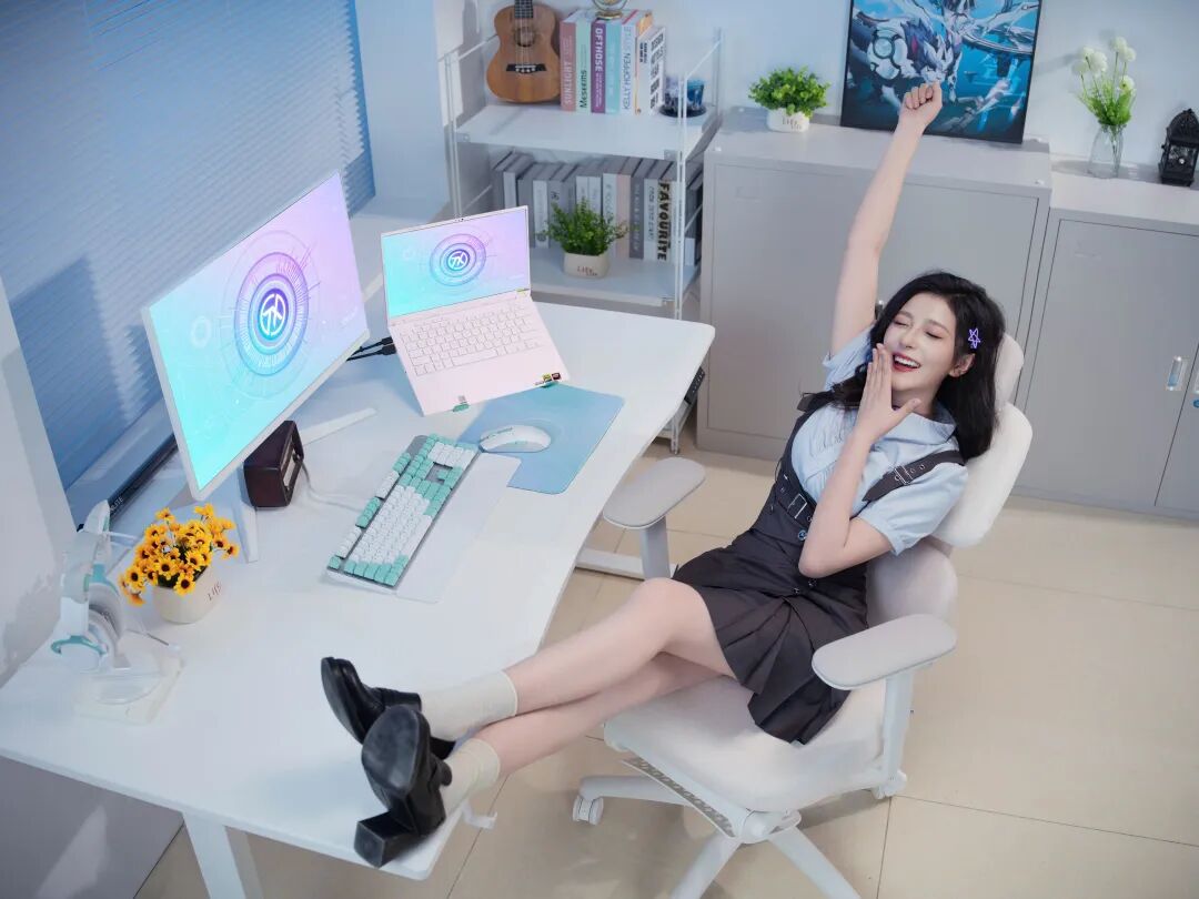 别看它身材小,内核却猛如虎,搭载RTX 5060独显和AMD锐龙AI 7处理器,Zen 5 CPU架构+DLSS 4多帧生成,《赛博朋克2077》中画质流畅运行,PS修图、视频剪辑更是基本操作,华硕的冰川散热系统很给力,89叶片液态轴承风扇+内吹设计,高负载下也能保持机身不烫手,既能陪你征战职场,也能带你畅游虚拟世界
