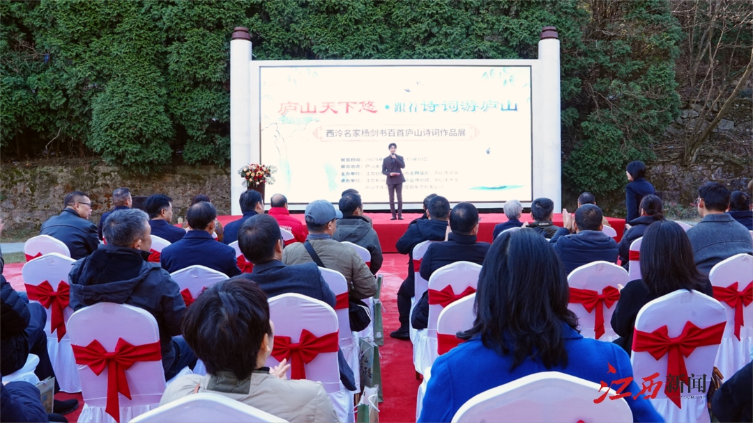 笔墨绘匡庐,诗韵传千年。12月6日,“庐山天下悠・跟着诗词游庐山” —— 西泠名家杨剑书百首庐山诗词作品展在庐山美术馆如期启幕。开幕现场高朋满座,气氛热烈。省政协、省委网信办、省文联相关部门领导,江西日报社相关领导,当地市委宣传部门相关负责同志,中国书法家协会代表以及众多书法艺术爱好者齐聚一堂,共赴这场融合山水之秀、诗词之韵与书法之美的文化盛宴。