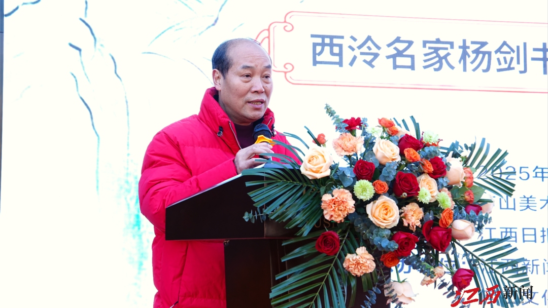中国书法家协会理事、江西省书法家协会原副主席、南昌大学教授韩顺任在致辞中,从书法专业角度高度评价了此次展览的艺术价值。他指出,杨剑的书法诸体兼擅,篆隶高古朴拙,行草洒脱奔放,其作品将金石之气与书卷之气完美融合,笔墨之间传递出对庐山人文精神的深刻理解,具有很高的艺术与审美价值。