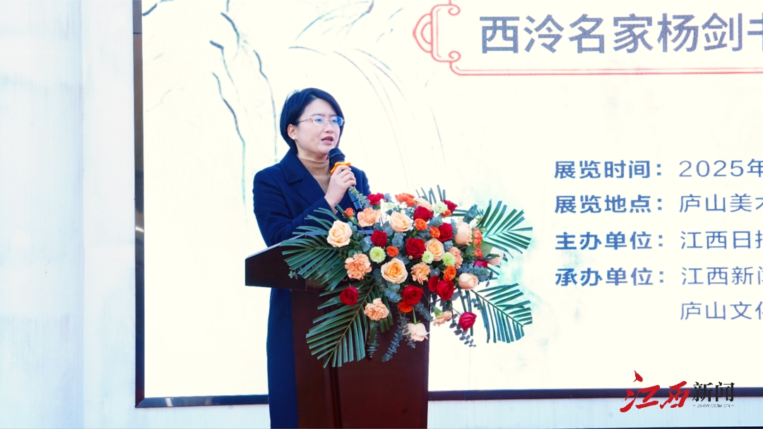 江西日报社江西新闻客户端总经理叶涛随后致辞,他表示,作为系列活动的主办单位之一,江西日报社始终致力于传统文化的传播与活化。此次展览是媒体与文化、旅游深度联动的成果,期待通过此次活动让更多人感受庐山诗词的魅力与书法艺术的博大精深。