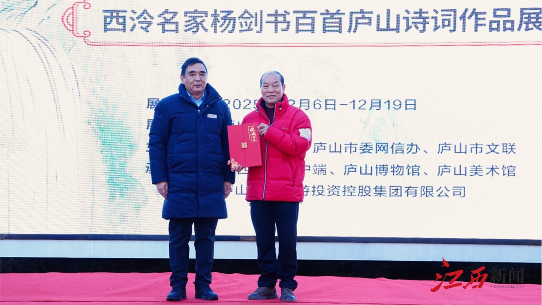开幕式现场还举行了捐赠仪式。杨剑将此次展出的百幅书法精品悉数捐赠给庐山博物馆。这些作品将极大丰富庐山博物馆的馆藏体系,为庐山文化的保护与传承注入新的内容。据悉,杨剑深耕书法篆刻艺术数十年,作品已被国内外数百家家博物馆、美术馆等专业机构珍藏。此次捐赠更是彰显了他对家乡文化事业的深厚情怀。