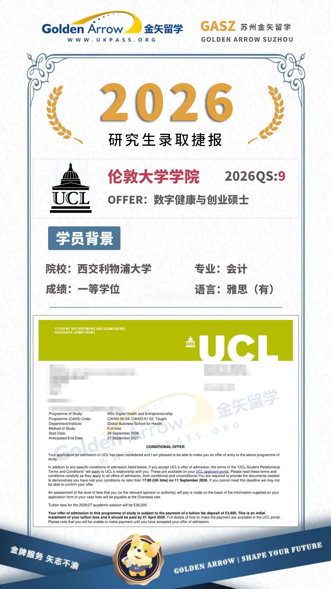恭喜西浦学生成功获得伦敦大学学院数字健康与创业硕士录取!
