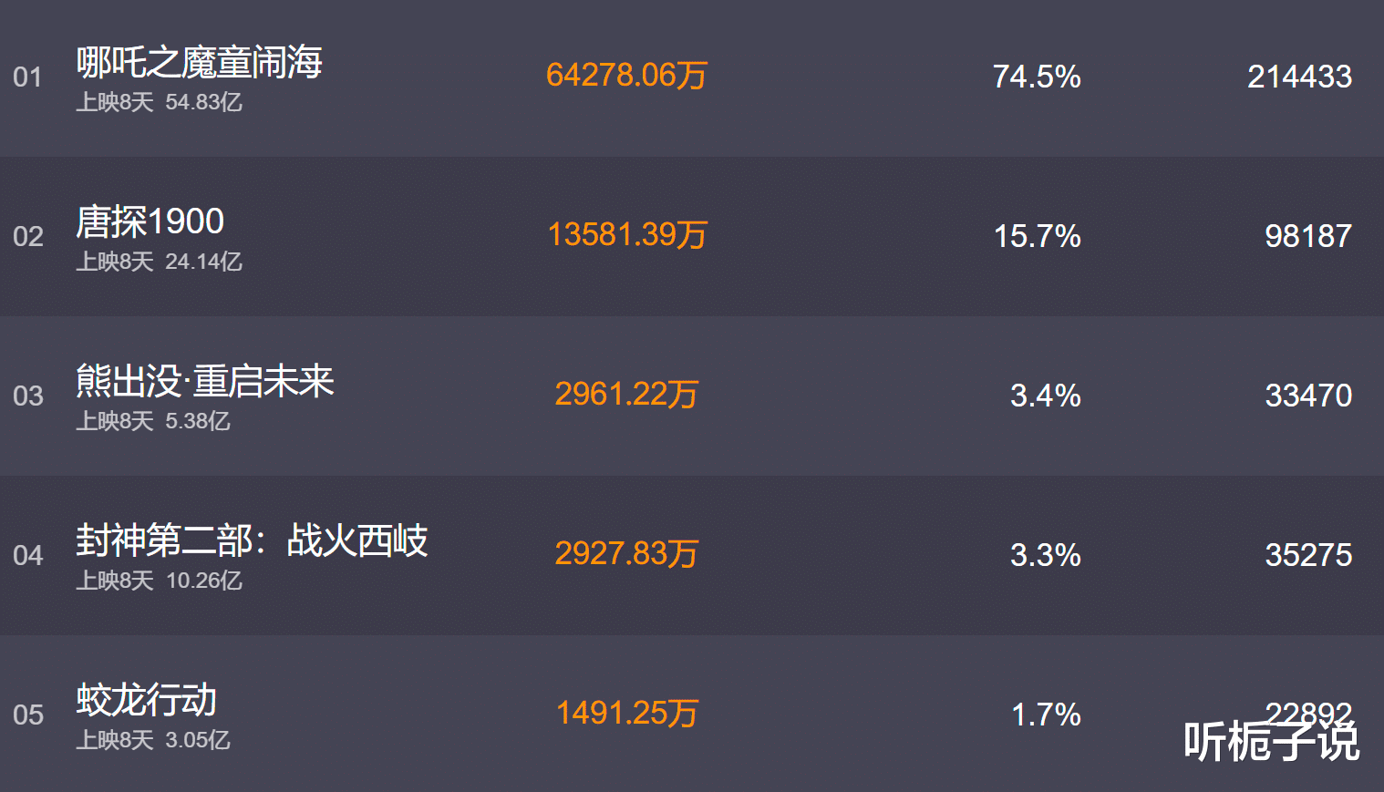 而今年的春节档翘楚,便是《哪吒2》,票房是《唐探1900》的一倍,卖了整整54.83亿,就连今日某眼预测总票房将会超过87亿。