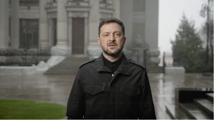 泽连斯基昨天在冷雨中发布视频讲话说: