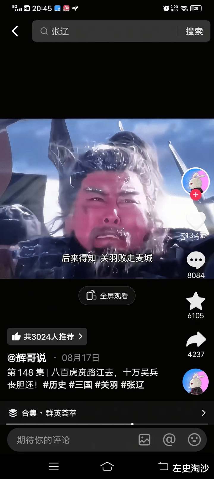 而且《三国演义》已经普及到了人人皆可说三国的地步,以致在很多短视频中甚至出现了,关羽未死,张辽提前率八百骑兵,突击孙权为关羽报仇的离奇桥段,而这种视频竟然有十几万、几万的点赞,不知道关羽知道后会不会谢这群人!