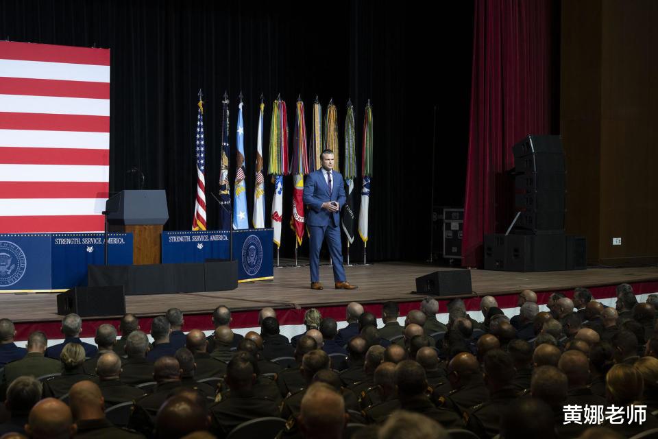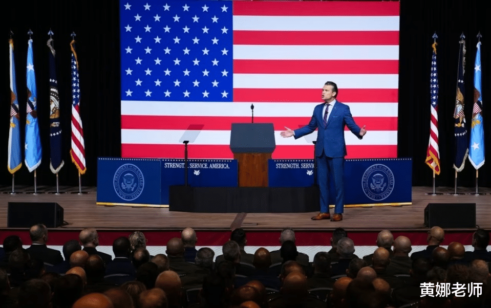 如果光看照片,你会发现:台上,美国国防部长,不,应该叫“战争部”部长,皮特·赫格塞斯慷慨激昂;