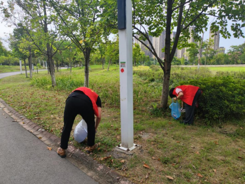 活动当天,工作人员提前准备手套、分类垃圾袋等工具,并简要讲解垃圾分类知识与安全注意事项。随后,员工们分为3个小组分别沿公园步道、草坪、湖边等区域展开清理。大家手持工具,弯腰捡拾烟头、塑料瓶、食品包装袋等垃圾,对隐藏在草丛和石缝中的细小垃圾也细致排查、逐一清理,同时主动向散步的市民宣传“不乱扔垃圾、做好垃圾分类”的环保理念。路过的王大爷说:”你们这些小青年真不错,大热天还能坚持做公益,精神可嘉”。