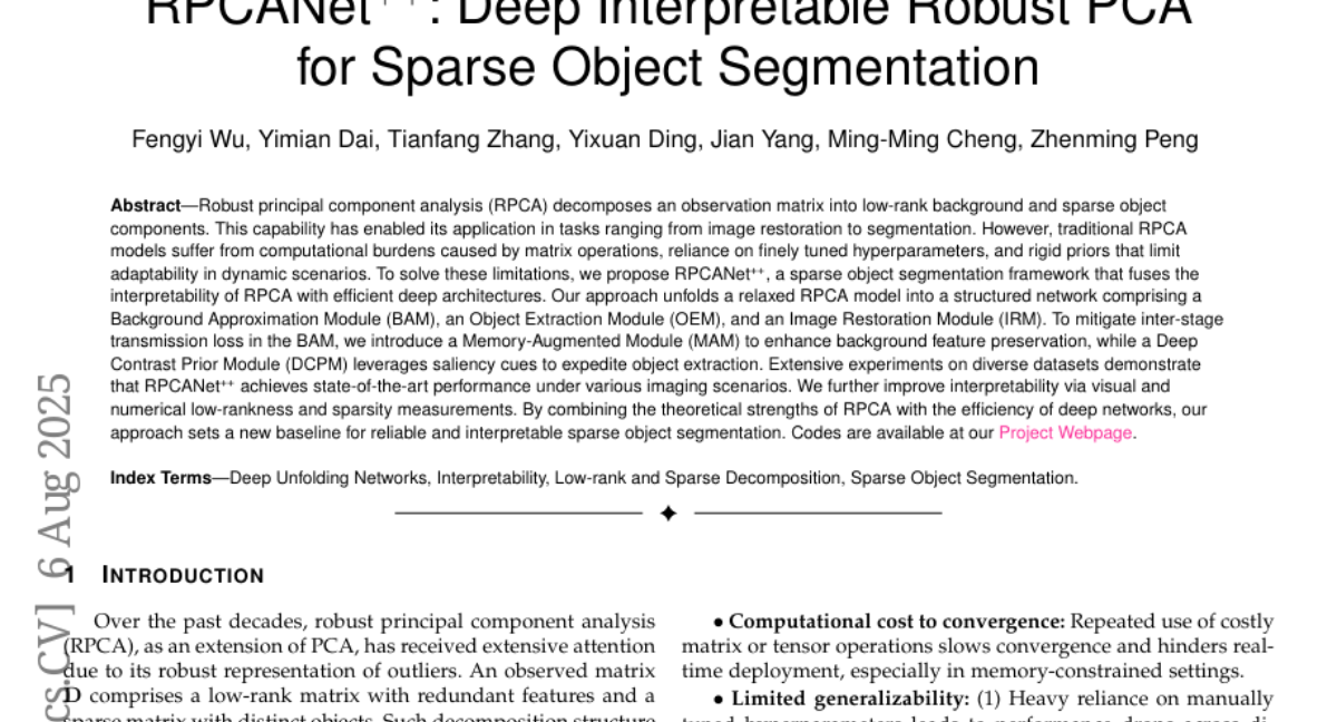 这项由电子科技大学吴逢义等人领衔,联合南开大学、清华大学等多所知名院校共同完成的研究发表于2025年8月的计算机视觉领域顶级期刊。有兴趣深入了解的读者可以通过论文标题"RPCANet++: Deep Interpretable Robust PCA for Sparse Object Segmentation"在学术数据库中找到完整论文。