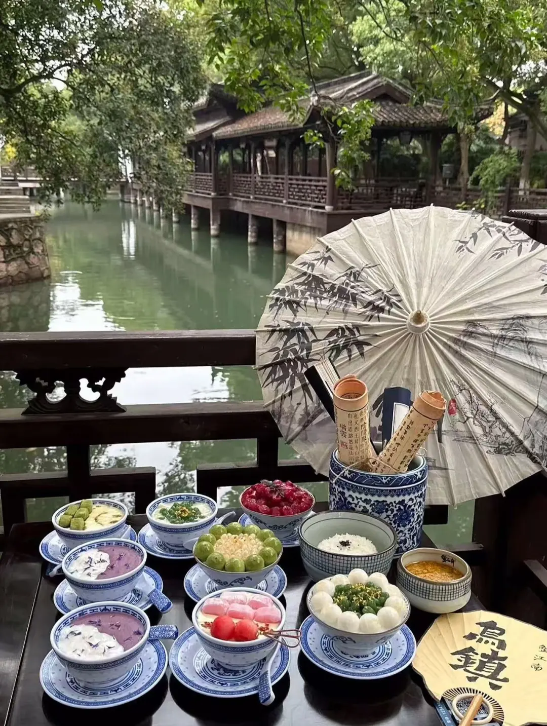 早晨的乌镇特别美. 薄雾笼罩在河面上, 偶尔有乌篷船慢慢划过. 我坐在河边的茶楼里, 点一壶龙井, 看着窗外的水波荡漾.