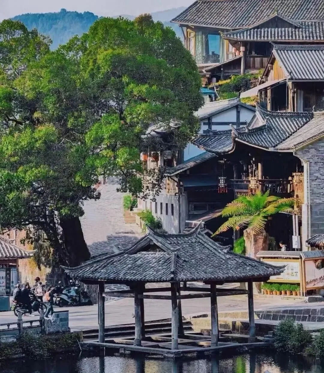 我住在古城里的一家客栈, 推开窗户就能看到河景.每天早晨被鸟鸣声叫醒, 这种感觉真的太奢侈了 .