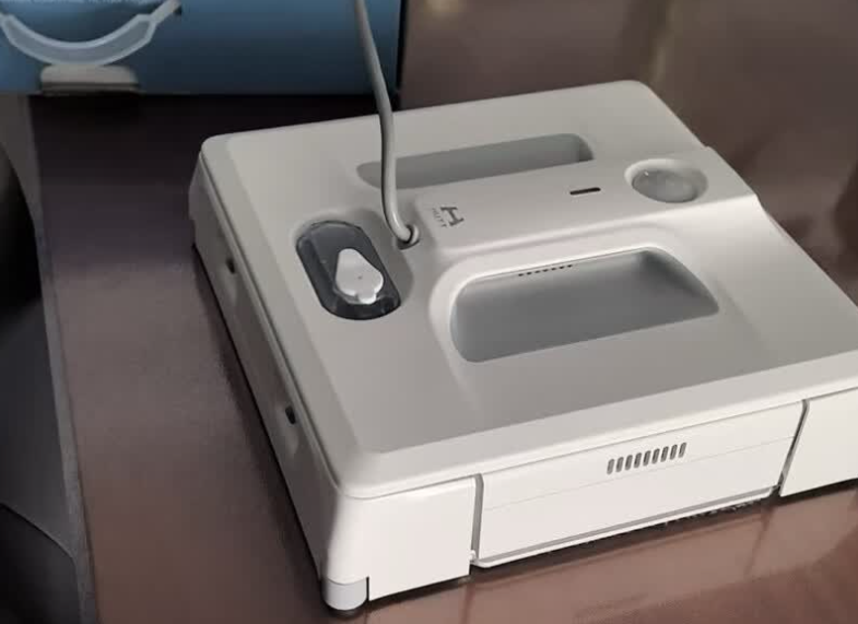 开机后 APP 一键启动,90W 无刷电机运行噪音较低,不扰日常活动。喷水均匀且不滴落窗台,对浮尘、轻度油污清洁效果直观。但向上清洁有水区域时易打滑,影响体验;面对厚重水垢,需切换强力模式重复操作。高层使用吸附稳固,不过 6.1 米电源线长度有限,大跨度玻璃清洁需挪动插座。